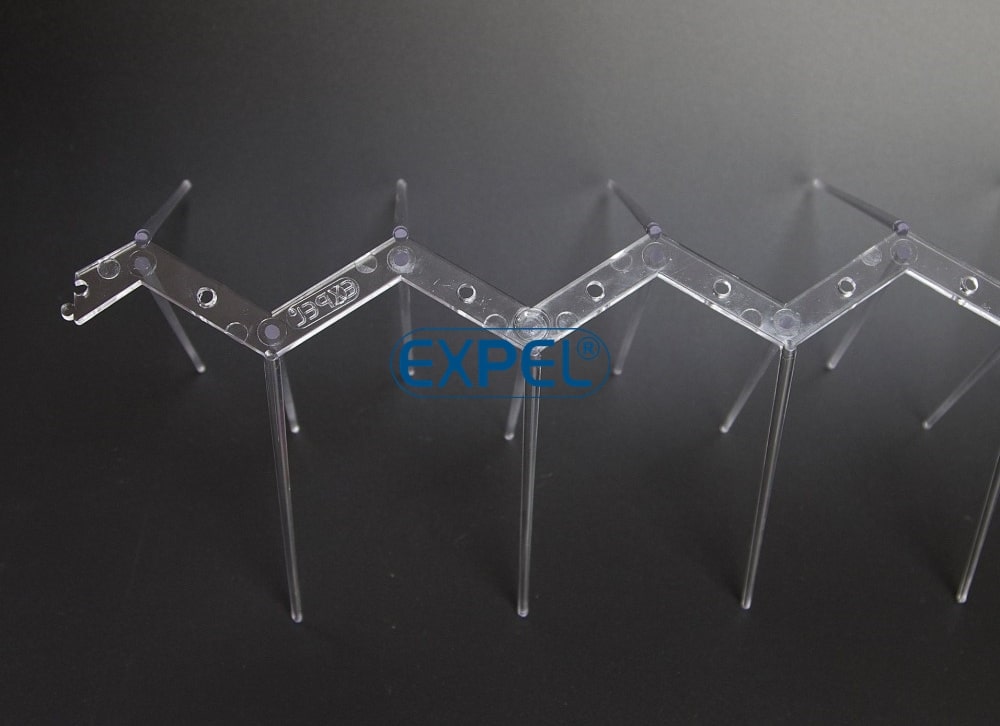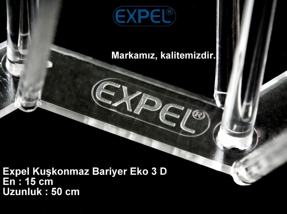 Expel Kuşkonmaz Bariyer EKO 2D Şeffaf Renk BU ÜRÜN KUŞLARA HAYATİ BİR ZARAR VERMEZ, SADECE KONMA VE YUVALANMA KONFORUNU BOZACAK ŞEKİLDE ETKİLER. DOĞADA HER CANLININ YAŞAM HAKKI VE BESİN ZİNCİRİNDE ÖNEMLİ BİR YERİ VARDIR. Kullanım Alanları: Cam önü, Söve üzeri, Balkon Kenarı, Parapet üzeri, Yağmur Oluk Üzeri, Panjur Kutu Üzeri, Klima Dış Kutusu, Kombi Borusu Üzeri ve kuşların konabileceği tüm yüzeyler. Dikkat! Lütfen çocukların zarar göreceği balkon demiri vb. yerlere montaj yapmayınız. Teknik Özellikler : 1. En: 15 cm. (Standart model küçük ve orta büyüklükteki kuşlar için)2. Uzunluk: 50 cm. 3. Yükseklik: Taban yüksekliği dahil 11,5 cm4. Şeffaf Polikarbonat plastikten imaldir.5. Alt tablo uçları yanlış montaja engel olmak için özel puzzle kilit sistemlidir. Bu sayede düzgün bir montaj imkanı sağlar, ara boşluklar oluşmadığından kuşların geçebileceği açıklıklar oluşmaz.6. ½ metrede 14 diken bloğu, Tek bir diken bloğunda 2 çubuk; 14 diken bloğunda toplam 28 çubuk bulunur. 7. ESCR (Çevresel etkili çatlamaya dirençli nem, basınç vb.)8. Mukavemetli, kırılmaya dayanıklıdır.9. Metal içermez, metal kaplama veya boya içermez, paslanmaz, çürümez, korozyona uğramaz.10. HB yanmazlık sınıfındadır.11. Kimyasal etkilere dayanıklıdır.12. Elektrik iletkenliği yoktur.13. Hafiftir, uygulandığı yüzeye yük bindirmez.14. Özel renk imal edilmektedir. Özel renk imal edilmesi için minimum sipariş miktarı 1000 m/tül’ dür. 15. Koli içeriği 50 m / 100 adet16. Sahip olduğu belgeler : TS EN 60068-2-75:2000, TS EN 60112:2006 +A1:2010, TS EN 60695-2-10:2003, TS EN 60068-2-1:2009, TS EN 60068 -2-2:2012